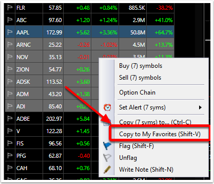 1. Right-click on the symbol you would like to add to the My Favorites WatchList.