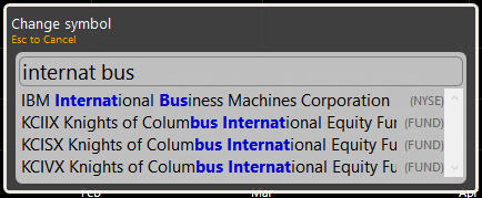 To jump to a particular stock, just start typing the symbol or the company name and the list will filter automatically.