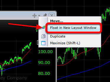 Click Float in New Layout Window to separate the chart from the current layout window for placement on a second screen.