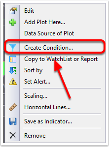 - Color this Plot (colors the plot at the point where the condition has occurred historically)