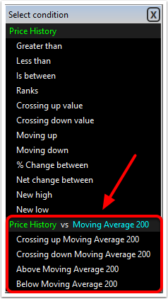 - New Filtered WatchList (Opens new window with default WatchList and sorts by condition set)