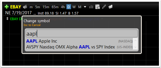 Here are four ways to change the active symbol being viewed to a different ticker symbol.