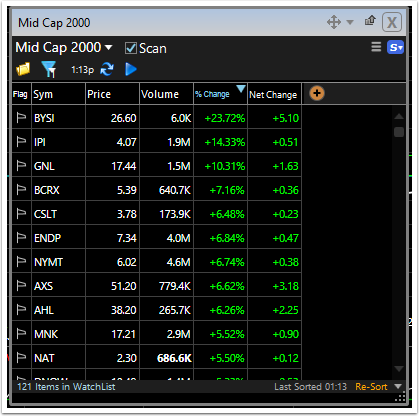 - New Filtered WatchList (Opens new window with default WatchList and sorts by condition set)