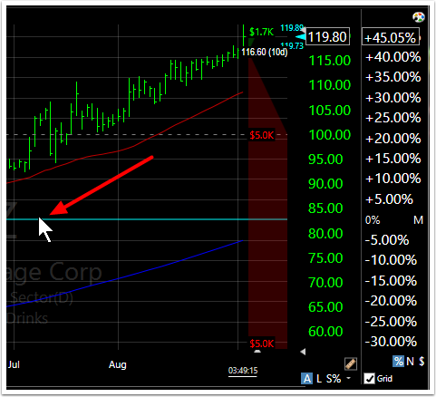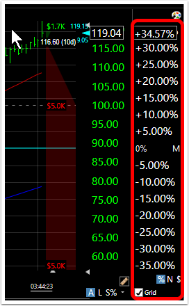 - $100 = measures a dollar value move up or down from the cursor point on the chart (based on a $100 investment).