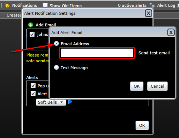 4. Make sure Email Address is selected and type the email you would like to have your alerts sent to.