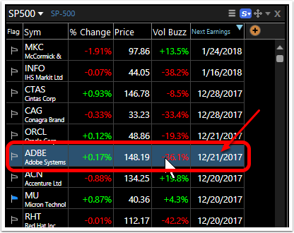 This sorts the list in descending order (largest to smallest values) which puts the farthest Next Earnings dates at the top of the WatchList.