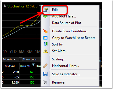 1. Click on the indicator name in the chart legend to open the Edit menu