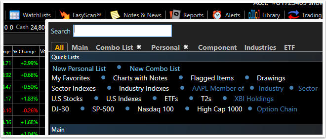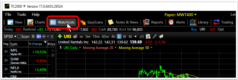 Click on the name of the WatchList desired to open the WatchList in a new, undocked window