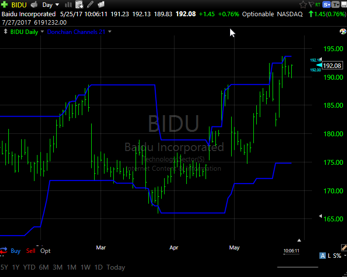 The Donchian Channel is a simple trend-following breakout system. The signals derived from this system are based on the following basic rules: