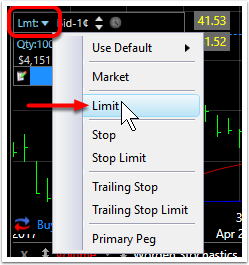 If the order ticket does not say "Limit", click the drop down and choose Limit from the menu.