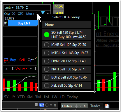 9. Add the order to an existing OCA (one-cancels-all) or create a new OCA group with any outstanding order.