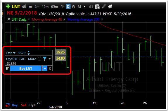 Placing a Limit order instructs TC2000 to buy or sell a certain amount of a stock at a specified price or better. This order type is often used when price is the primary and fill is a secondary concern. A limit order is not guaranteed to fill but if it fills it will be at the stated price or better. The simplest way to place a Buy Limit order in TC2000 is using the on-chart order ticket.