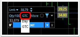 The time-in-force field is used to choose the duration, either GTC (good-til-cancelled) or Day (good for the current trading session only).