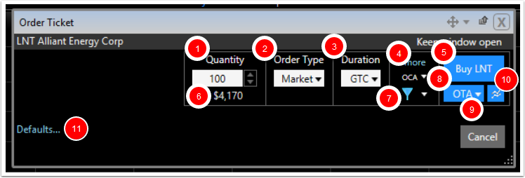 The on-chart order ticket contains these fields which can be edited on the fly: