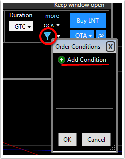 6. Add the order to an existing OCA (one-cancels-all) or create a new OCA group with any outstanding order.