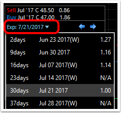 4. View available strike prices with the limit price lines