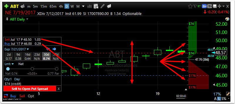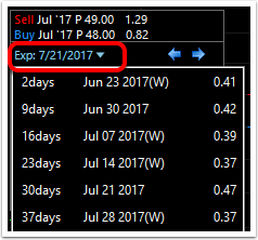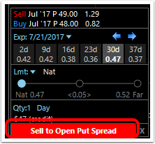 Selling a put spread is a multi-legged bullish options play profitable when a stock moves up. These options extend from the purchase date to the selected expiration date. Below are the steps to place an order from the chart to sell a put spread.