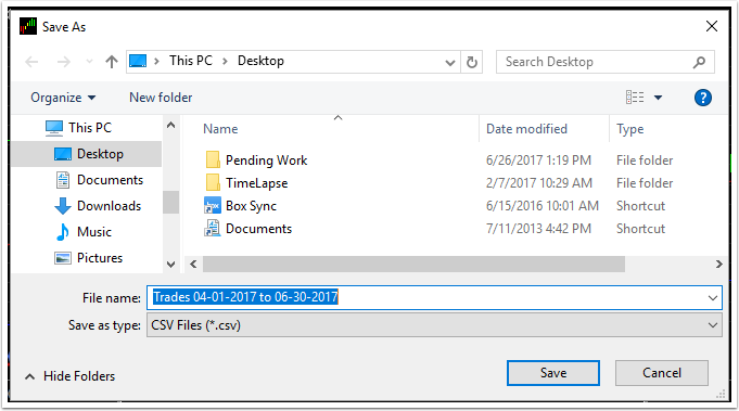 Note: rename file if desired. Default name uses the date range selected.