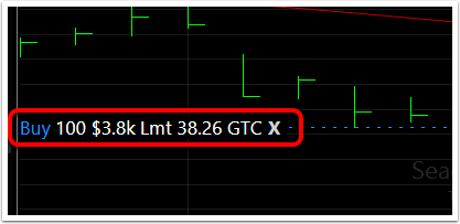 Release the mouse button and the Modify confirmation window appears. Click Modify Order to move the limit price of the order to the new price level.